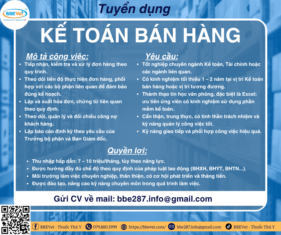 TUYỂN DỤNG: KẾ TOÁN BÁN HÀNG