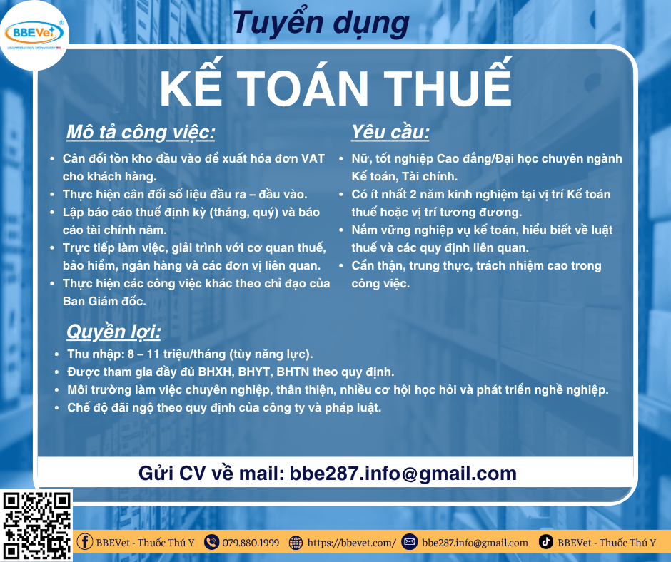 TUYỂN DỤNG: KẾ TOÁN THUẾ